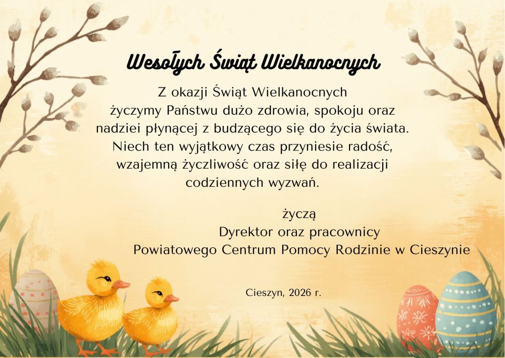 Życzą Dyrektor oraz pracownicy Powiatowego Centrum Pomocy Rodzinie w Cieszynie
